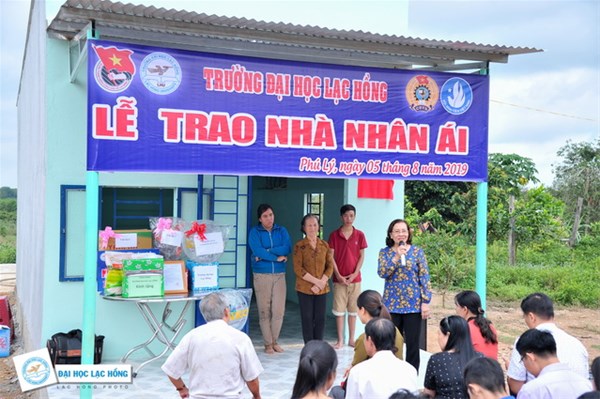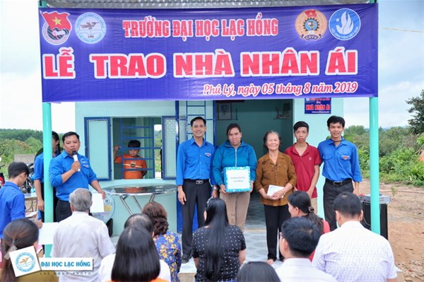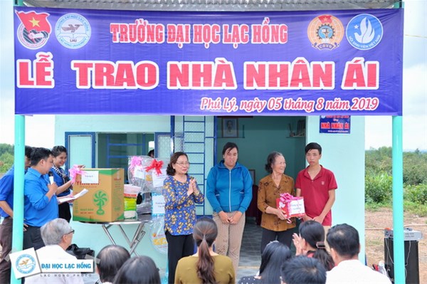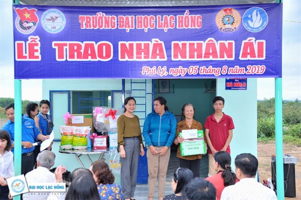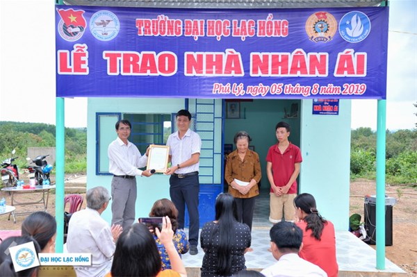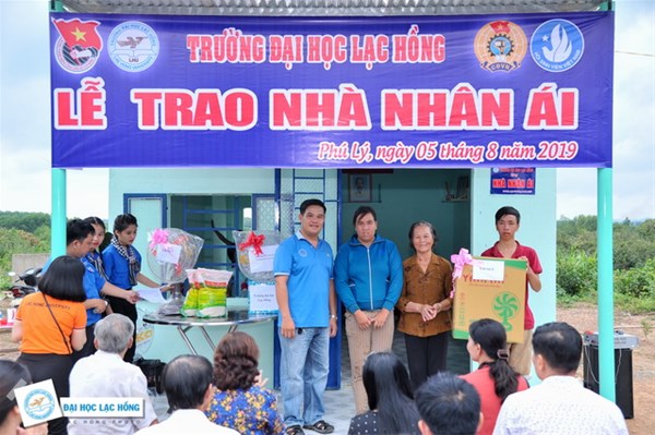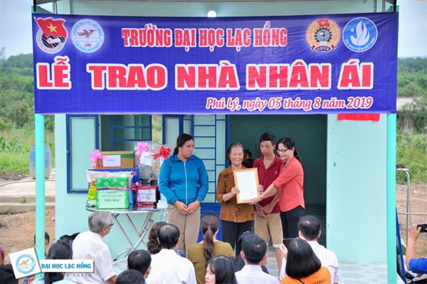 Nằm trong chương trình công tác Hè năm 2019. Sau gần 2 tuần khởi công xây dựng “Ngôi nhà Nhân Ái” trong chiến dịch Mùa hè xanh 2019. Trường Đại học Lạc Hồng, UBND xã Phú Lý, Đội Mùa hè xanh đã tiến hành bàn giao cho 02 chị em cháu Phạm Văn Hiệp ngụ ấp Bình Chánh, xã Phú Lý, huyện Vĩnh Cửu (Cháu Hiệp và chị gái hiện đang mồ côi cả cha và mẹ, đang ở nhờ cùng với bà nội tại nhà của chú ruột). Ngôi nhà với nguồn kinh phí được vận động từ thầy, cô, cùng các bạn sinh viên, Công đoàn trường ĐH Lạc Hồng và cá nhân Thầy Đỗ Hữu Tài – Hiệu trưởng nhà trường…Ngôi nhà với tổng kinh phí là 60 triệu đồng. Công trình cũng là dịp để tuổi trẻ ĐH Lạc Hồng chào mừng Kỉ niệm 70 năm ngày truyền thống Học sinh - Sinh viên và Hội Sinh viên Việt Nam (09/01/1950 - 09/01/2020), kỉ niệm 90 năm ngày thành lập Đảng Công sản Việt Nam.