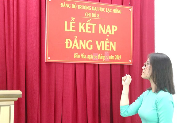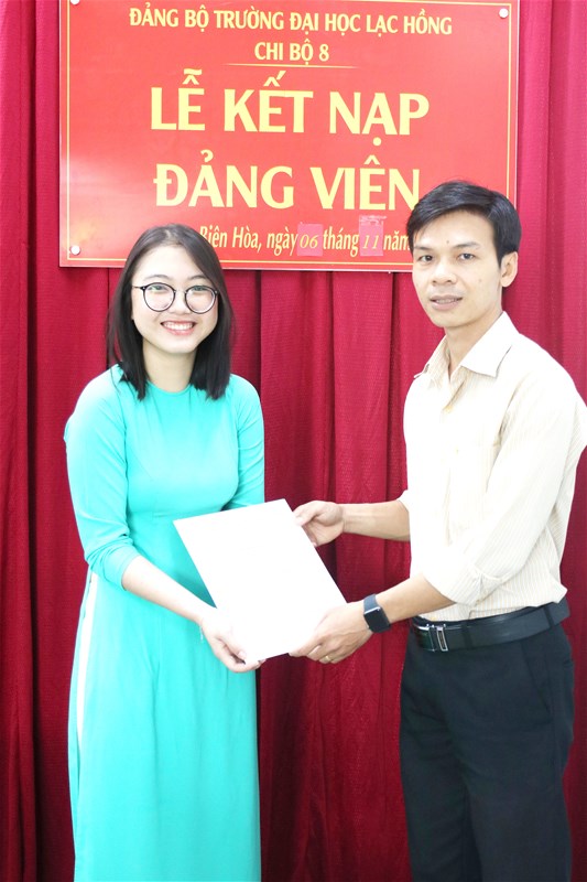 Được sự đồng ý của Đảng ủy khối các cơ quan tỉnh Đồng Nai, Ban Thường vụ Đảng ủy trường; Sáng ngày 06/11/2019 tại văn phòng Đảng ủy cơ sở 3, Chi bộ 8 đã tổ chức Lễ kết nạp đảng viên cho quần chúng Nguyễn Đặng Tường Vy – Khoa Dược vào Đảng Cộng sản Việt Nam, đến dự buổi lễ kết nạp có Đ/c Lê Sơn Quang – UV.BTV Đảng ủy trường, Đ/c Trần Tiến – Bí thư Chi bộ 8 cùng sự có mặt của toàn thể đảng viên trong Chi bộ 8.