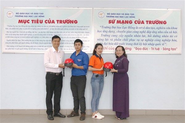 Ban lãnh đạo tặng nón bảo hiểm cho sinh viên