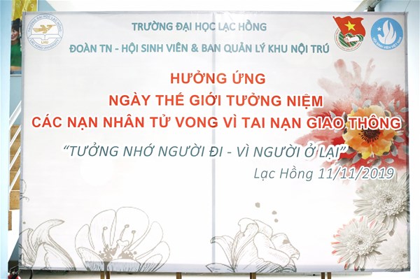 Sáng ngày 11/11/2019 tại cơ sở 3, trường ĐH Lạc Hồng, Ban quản lý Khu nội trú phối hợp với Đoàn Thanh niên – Hội Sinh viên trường tổ chức hoạt động hưởng ứng “Ngày thế giới tưởng niệm các nạn nhân tử vong vì tai nạn giao thông” năm 2019.