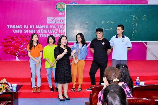Chuyên gia tâm lý Tô Nhi A đang trao đổi với các bạn sinh viên