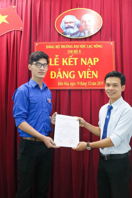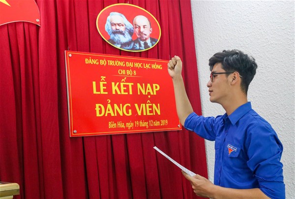 Trong không khí trang nghiêm khi nhận quyết định kết nạp, dưới cờ Tổ quốc, cờ Đảng và chân dung Chủ tịch Hồ Chí Minh, tân đảng viên đã tuyên thệ lời thề của người đảng viên Đảng Cộng sản Việt Nam, hứa sẽ tiếp tục phấn đấu để luôn xứng đáng là người đảng viên gương mẫu, đóng góp sức mình thực hiện thành công nhiệm vụ chính trị của Chi bộ, góp phần xây dựng Đảng bộ Trường ĐH Lạc Hồng ngày càng vững mạnh.
