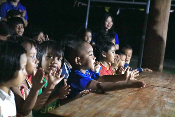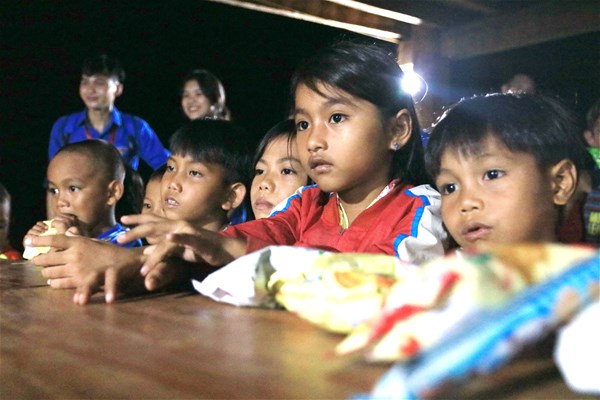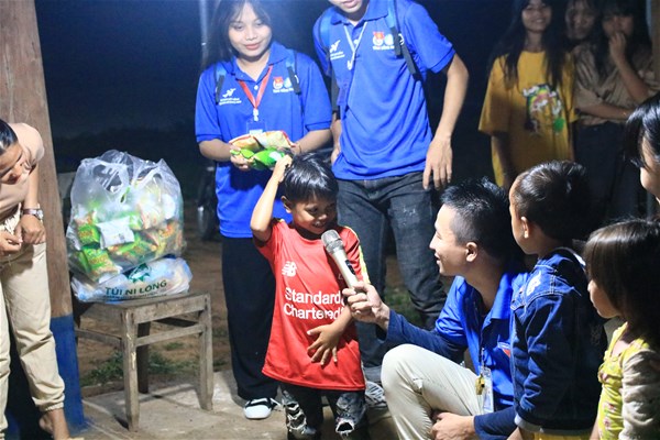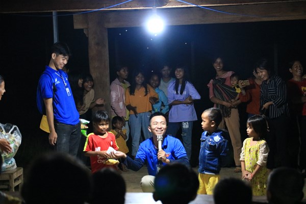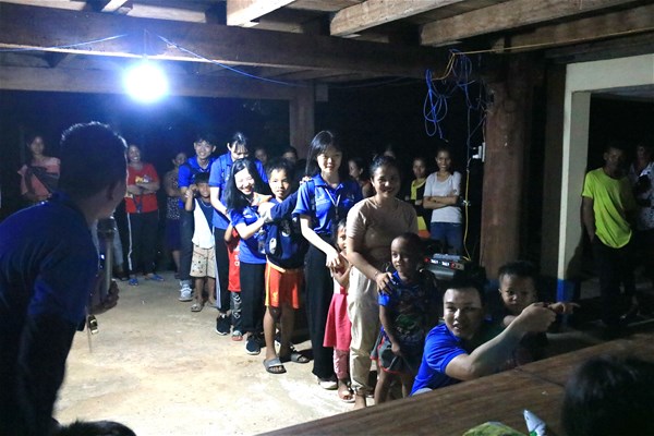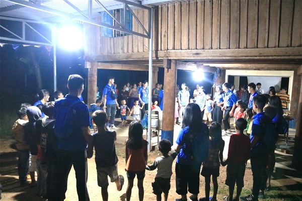 Hoàn thành xong những công việc của buổi sáng, chiều đến các Chiến sỹ tình nguyện lại di chuyển về nhà Rông của Làng để cùng sinh hoạt với các trẻ em nơi đây. Tại đây Đội TNTN đã cùng các em chơi trò chơi, cùng trò chuyện và cùng nắm chặt tay nhau để xích lại gần nhau, truyền cho nhau những hơi ấm trong một  đêm thời tiết của cao nguyên se se lạnh. Các em được hướng dẫn chơi những trò chơi dân gian, được tặng nhiều quà bánh, được hát nhiều ca khúc thiếu nhi,…