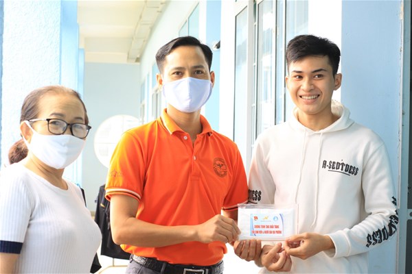 Đại diện Đoàn trường Đ/c Lê Sơn Quang tặng khẩu trang