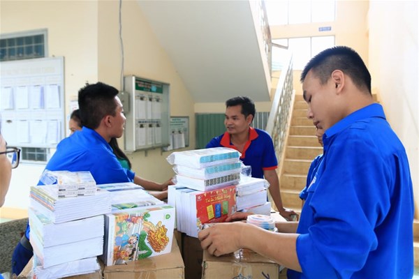 Những Chiến sỹ áo xanh vận chuyển tập vở, đồ dùng học tập,...