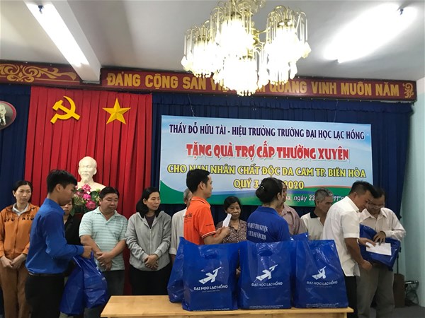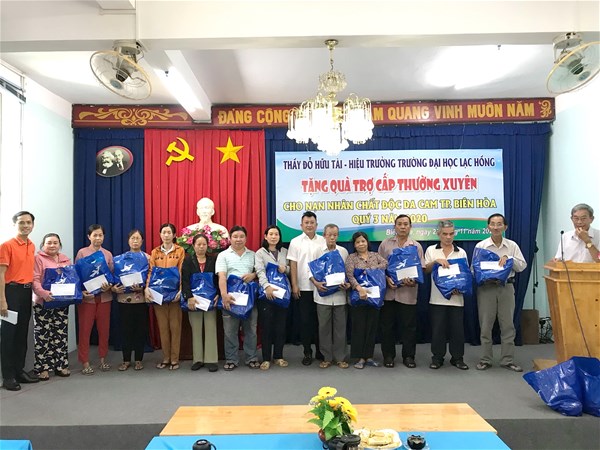 Trường Đại Học Lạc Hồng và cá nhân một số Lãnh đạo Nhà trường hỗ trợ, trợ cấp thường xuyên cho 90 nạn nhân chất độc da cam trên địa bàn tỉnh Đồng Nai. Số tiền trợ cấp hàng tháng là 400.000đ / 01 nạn nhân, đây là mức tiền trợ cấp thường xuyên hàng tháng cao nhất cho nạn nhân chất độc da cam trên địa bàn tỉnh Đồng Nai.