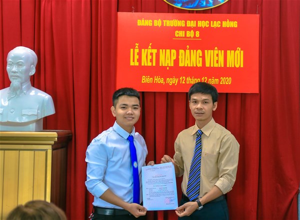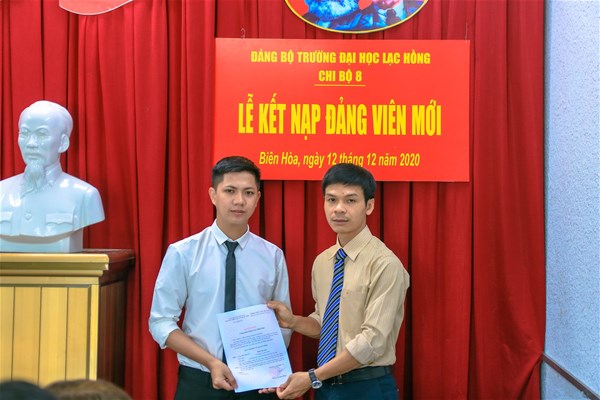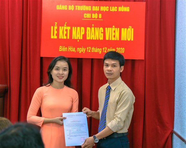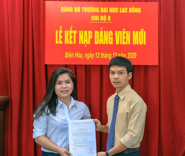 Được sự đồng ý của Đảng ủy khối các cơ quan tỉnh Đồng Nai, Ban Thường vụ Đảng ủy trường; ngày 12/12/2020, tại văn phòng Đảng ủy, Cơ sở 3; Chi bộ 8 đã tổ chức Lễ kết nạp đảng viên cho 04 quần chúng vào Đảng Cộng sản Việt Nam, đến dự buổi lễ kết nạp có Đ/c Nguyễn Thị Thu LanPhó Bí thư Đảng ủy trường, Phó Hiệu trưởng nhà trường cùng toàn thể đảng viên trong Chi bộ 8.