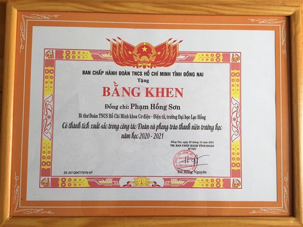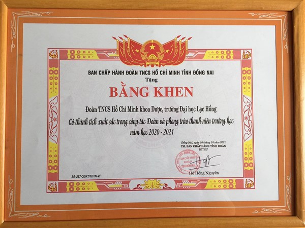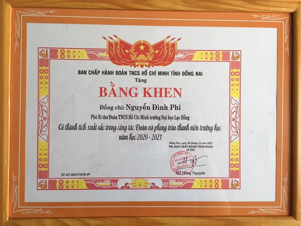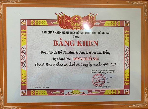 BTV Tỉnh đoàn Đồng Nai cũng tặng Bằng khen cho các đơn vị, cá nhận xuất sắc, trong đó, tại LHU có: