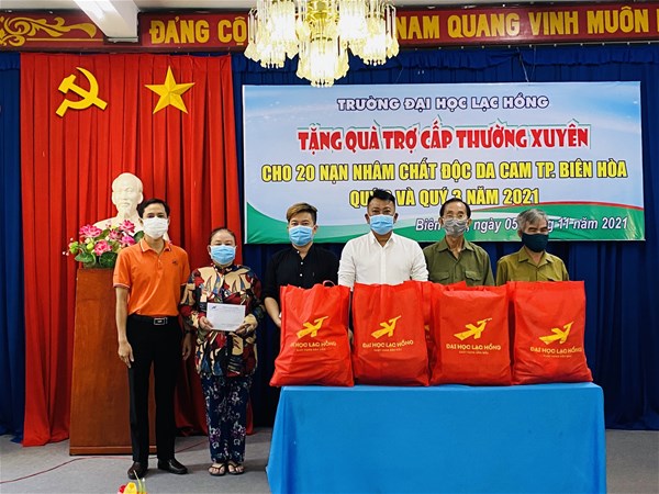 Trường Đại học Lạc Hồng và gia đình Cô Đỗ Thị Lan Đài (Chủ tịch Hội đồng trường), Thầy Đỗ Khôi Nguyên (Phó Hiệu trưởng nhà trường) hỗ trợ, trợ cấp thường xuyên cho 90 nạn nhân chất độc da cam trên địa bàn tỉnh Đồng Nai.