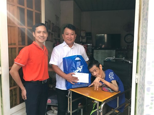 Hình 4: Thầy Đỗ Khôi Nguyên - Phó Hiệu trưởng nhà trường trong một lần trao tặng quà trợ cấp cho các nạn nhân da cam