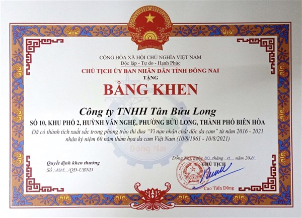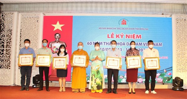 Tại lễ kỷ niệm, 10 tập thể, 32 cá nhân có thành tích xuất sắc trong phong trào thi đua “Vì nạn nhân chất độc da cam” từ năm 2016 - 2021 đã được UBND tỉnh trao tặng bằng khen. Ngoài ra, Hội Nạn nhân chất độc da cam/dioxin tỉnh khen thưởng cho 77 cá nhân và tập thể. Trong đó, Trường Đại học Lạc Hồng, Trường Song ngữ Lạc Hồng và Công ty Tân Bửu Long (đơn vị đồng hành cùng nhà trường) vinh dự được Chủ tịch UBND tỉnh Đồng Nai tặng Bằng khen đã có thành tích xuất sắc trong phong trào thi đua Vì nạn nhân da cam từ 2016 - 2021.