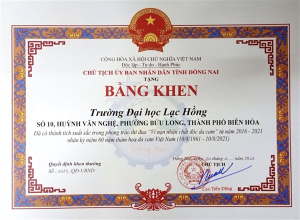 Dioxin, khen thưởng, ĐH Lạc Hồng