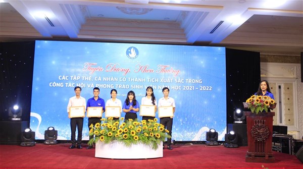 Về phía Hội Sinh viên trường: Có các tập thể, cá nhân được tặng bằng khen đạt thành tích xuất sắc trong công tác Hội và phong trào sinh viên năm học 2021 - 2022