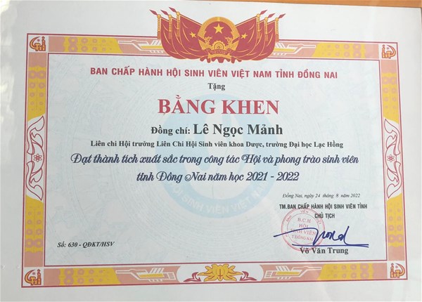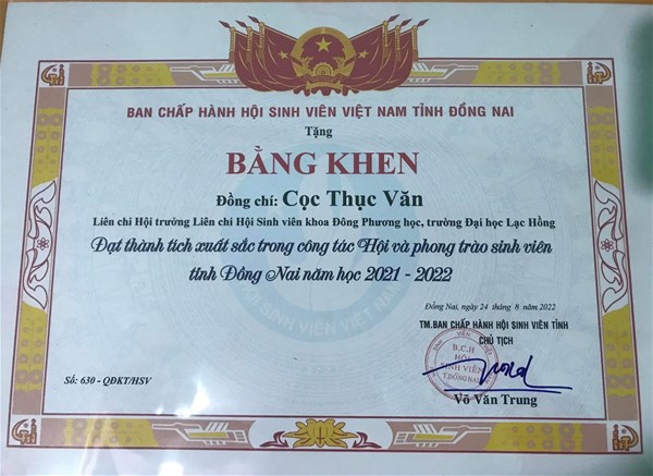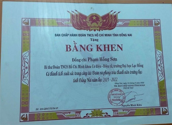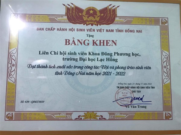 Tại hội nghị, nhiều cá nhân, tập thể trực thuọc Đoàn Thanh niên - Hội Sinh viên trường đã được Ban Thường vụ Tỉnh đoàn và Ban Thư ký Hội Sinh viên tỉnh Đồng Nai tặng bằng khen đã có thành tích xuất sắc trong công tác Đoàn và phong trào sinh viên năm học 2021 - 2022.
