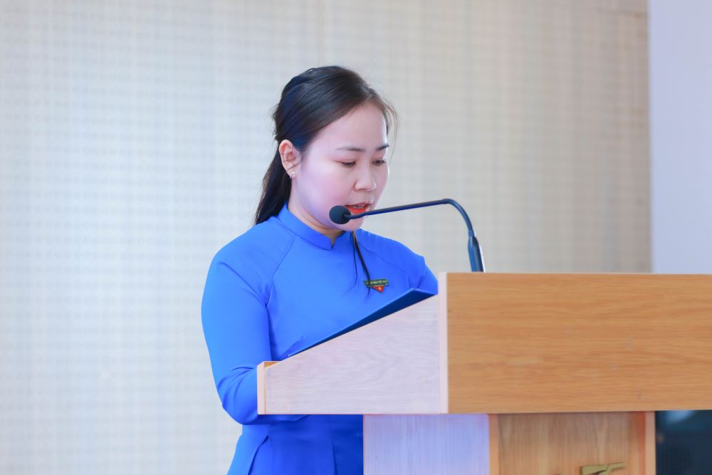 Hình 2: Đồng chí Trương Lê Bảo Trinh - Bí thư Đoàn trường đã ôn lại truyền thống lịch sử vẻ vang của Đoàn TNCS Hồ Chí Minh trong suốt 93 năm qua