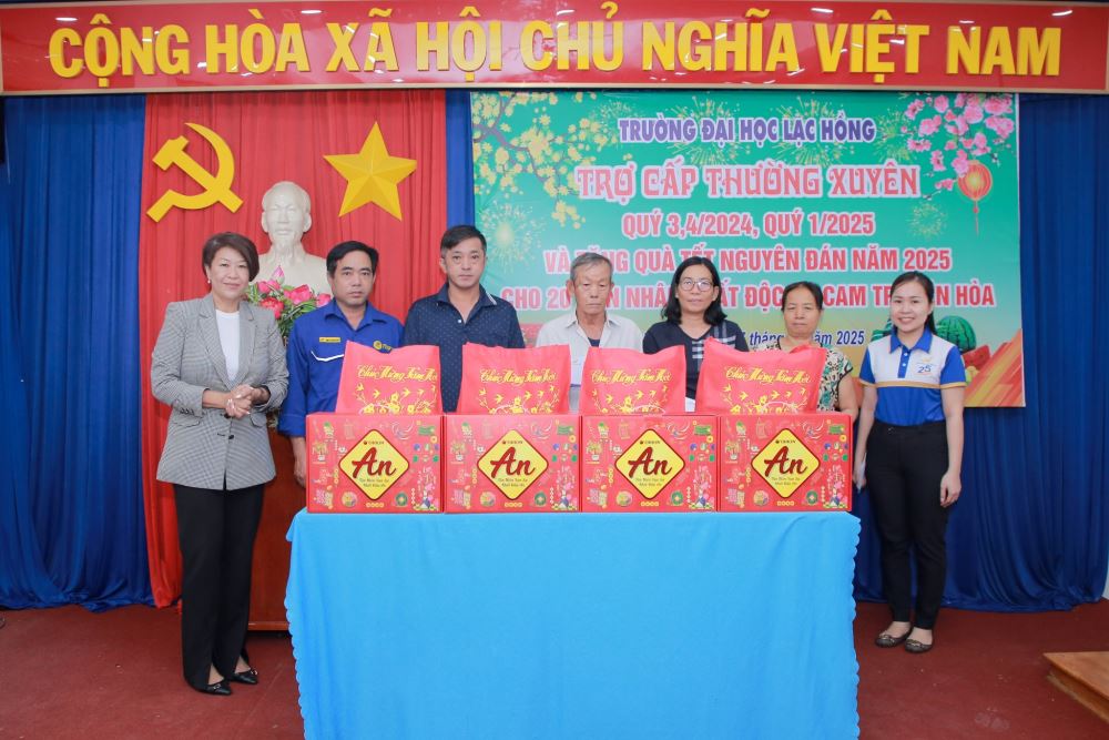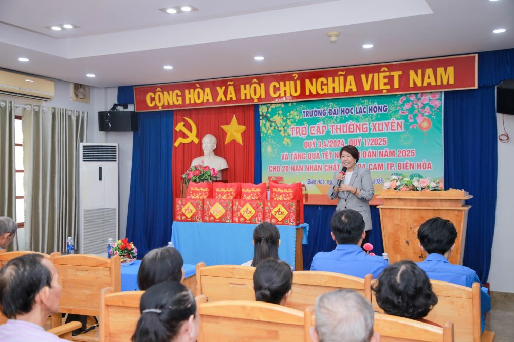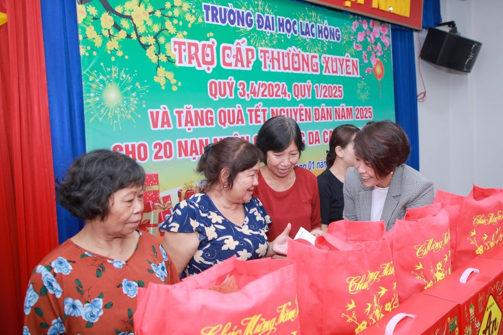 Sáng ngày 07/01/2025, trong không khí ấm áp và tràn đầy tình yêu thương, cô Đỗ Thị Lan Đài - Chủ tịch Hội đồng trường Đại học Lạc Hồng đã trực tiếp đến thăm, trao quà và trợ cấp thường xuyên quý III, IV/2024; quý I/2025 cùng quà Tết cho 20 nạn nhân chất độc da cam tại thành phố Biên Hòa, Đồng Nai.
