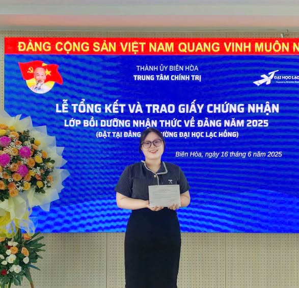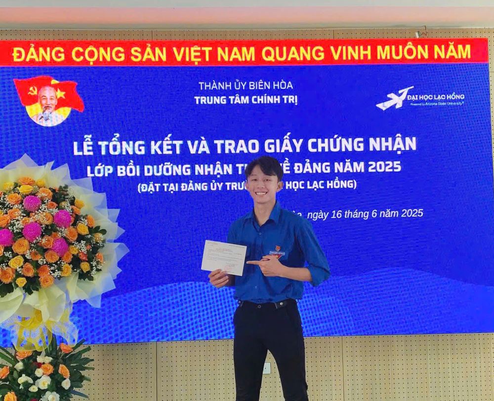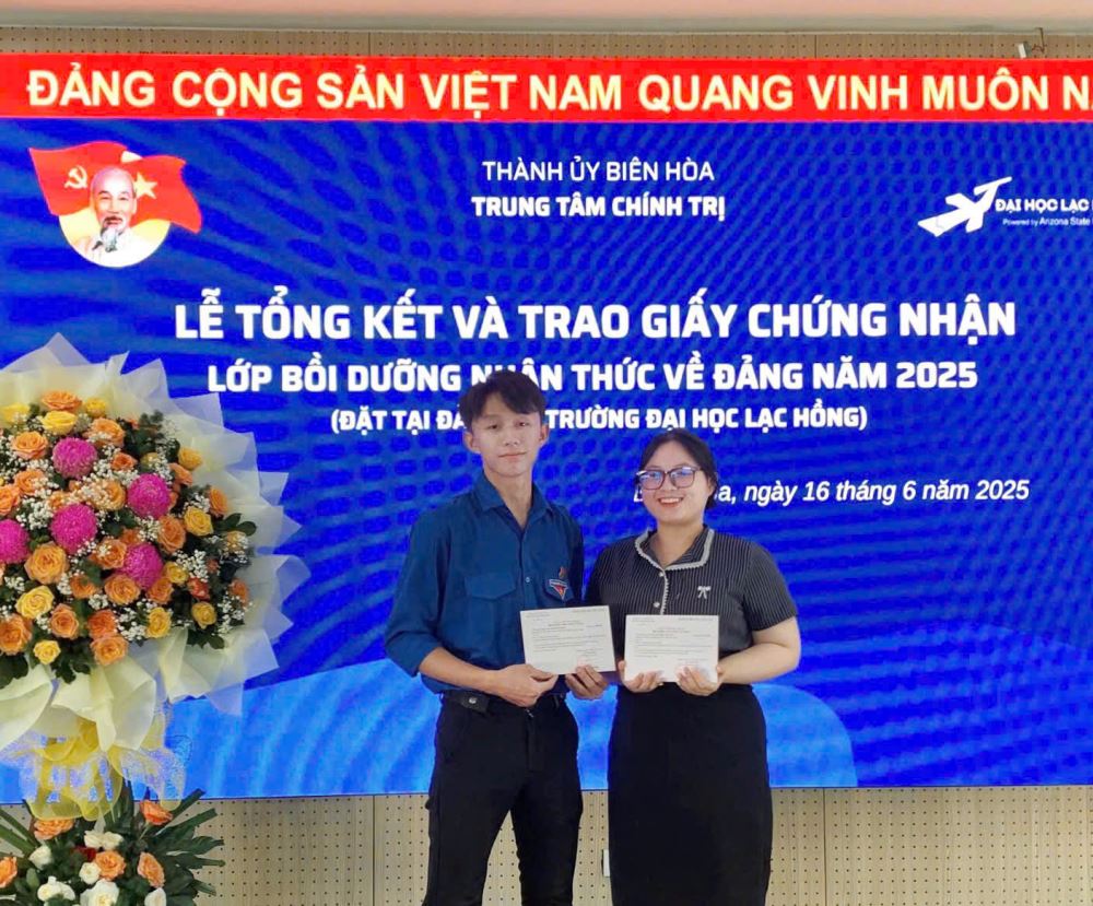 Sáng nga, hai đồng chí Ủy viên Ban Chấp hành Đoàn Trường Đại học Lạc Hồng đã hoàn thành Lớp Bồi dưỡng nhận thức về Đảng, đánh dấu một cột mốc quan trọng trong quá trình phấn đấu trở thành đảng viên Đảng Cộng sản Việt Nam.