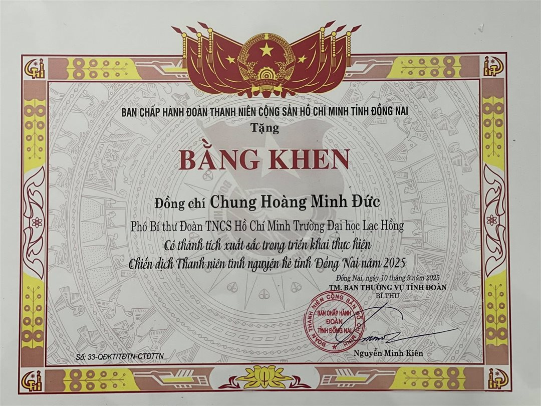 Mỗi thành tích được ghi nhận chính là minh chứng cho tinh thần cống hiến bền bỉ, góp phần viết tiếp hành trình phát triển vững mạnh của công tác Đoàn – Hội Trường Đại học Lạc Hồng