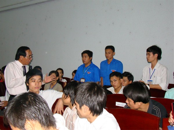Hình 4: TS Trần Hành - Hiệu trưởng nhà trường đã giải đáp tận tình các thắc mắc của các bạn sinh viên