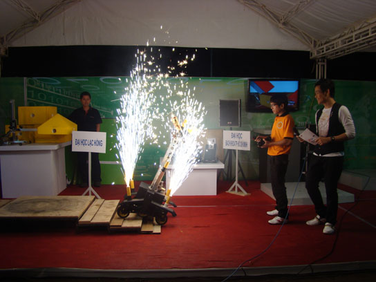 Rất mong quý thầy cô giáo và các bạn sinh viên hãy bình chọn cho các sản phẩm của trường ta để có thể nhận được giải thưởng cao của ban tổ chức. Mã số bình chọn Robot bắn pháo hoa của trường Đại học Lạc Hồng là 11. Để bình chọn cho sản phẩm này các bạn soạn tin theo cấu trúc: