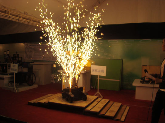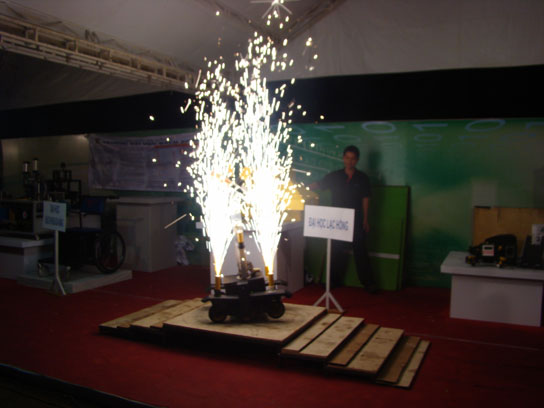 Lưu ý: Sản phẩm Robot bắn pháo hoa sẽ được giới thiệu trong đêm 11/05/2010 vì vậy bắt đầu từ 22h00 ngày 11/05/2010 đến 17h00 ngày 12/05/2010 các bạn có thể nhắn tin để bình chọn cho sản phẩm này. Rất mong nhận được hưởng ứng của quý thầy cô và các bạn sinh viên.