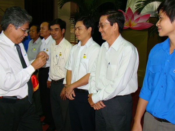 Đ/c Nguyễn Văn Tuấn nhận huy hiệu trong công tác vận động hiến máu năm 2009