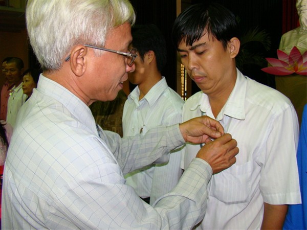 Thầy Châu Quang Trạng nhận huy hiệu trong công tác vận động hiến máu năm 2009