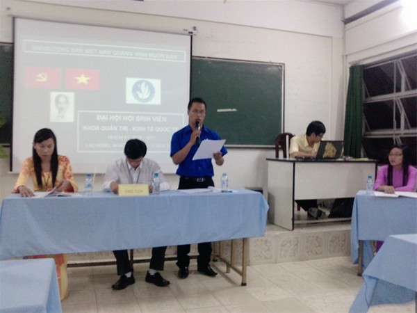 Hình 5: Đồng chí Trần Tiến - Chủ tịch Hội sinh viên trường phát biểu chỉ đạo Đại hội