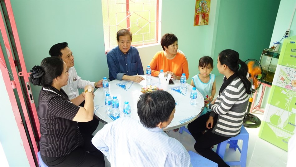 Đây là lần thứ 2 Đoàn ghé thăm gia đình em, ngoài sự tiếp đón ân cần của gia đình, đoàn còn nhận được sự quan tâm sâu sắc của Lãnh đạo địa phương, đến tham dự Lễ trao nhà cho Bà Lê Thị Thắm và em Hoàng Kim có các đồng chí Lưu Thành Công - Phó Trưởng đoàn Đại biểu Quốc Hội tỉnh Vĩnh Long, đồng chí Nguyễn Thị Bé Thu - Thường vụ Huyện ủy, Chủ nhiệm UBKT Huyện Mang Thít, đồng chí Đào Thành Tín - Bí thư Đảng ủy xã Long Mỹ và  đồng chí Huỳnh Hoàng Phong - Phó Chủ tịch UBND xã Long Mỹ.