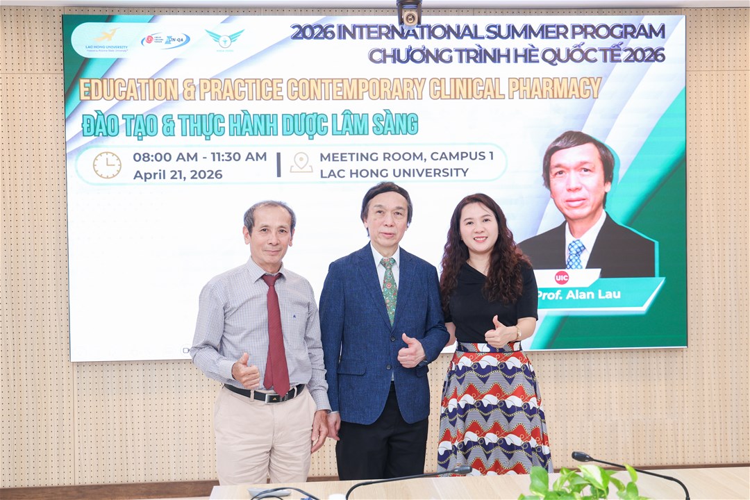 Ngày 21/04/2026, Khoa Dược – Trường Đại học Lạc Hồng đã tổ chức buổi giới thiệu chương trình “Đào tạo và thực hành Dược lâm sàng” của Đại học Illinois Chicago (Hoa Kỳ). Chương trình nhằm cập nhật xu hướng đào tạo hiện đại và nâng cao năng lực thực hành Dược lâm sàng trong bối cảnh hội nhập quốc tế.