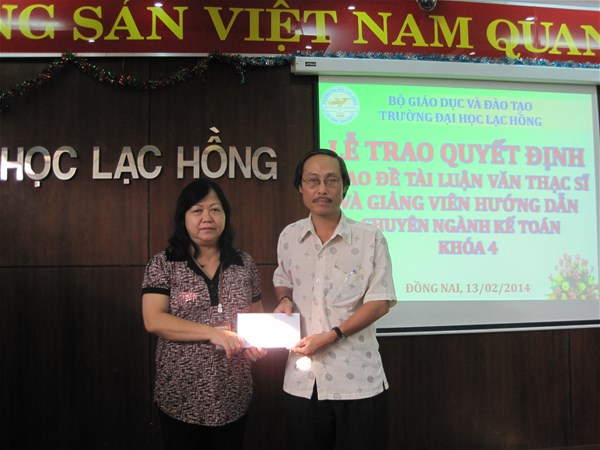 Ngày 18/01/2013 và ngày 13/02/2014, Trường Đại học Lạc Hồng đã tổ chức Lễ trao quyết định giao đề tài luận văn thạc sĩ cho các học viên ngành Kế toán khóa 4 năm 2012.