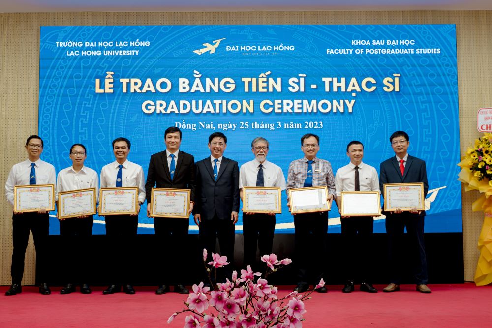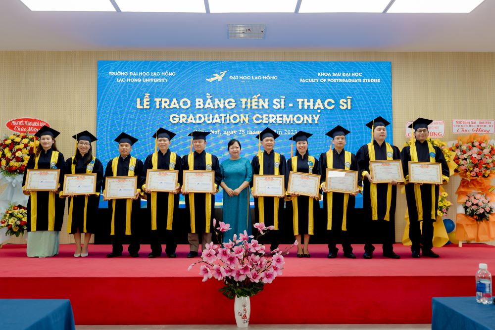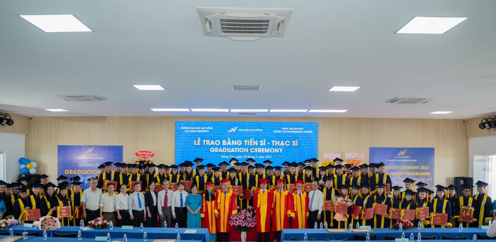 Ngày 25/3/2023, tại Hội trường A301 (CS1- LHU), khoa Sau đại học (SĐH), Trường Đại học Lạc Hồng long trọng tổ chức Lễ trao bằng Tiến sĩ- Thạc sĩ năm 2023, vinh danh cho 142 tân Thạc sĩ và 04 tân Tiến sĩ. Buổi lễ có sự tham dự của TS. Lâm Thành Hiển- Hiệu trưởng nhà trường; TS. Lê Thu Thủy- Trưởng khoa SĐH, TS. Lữ Phi Nga- Phó Trưởng khoa SĐH và đại diện Lãnh đạo các đơn vị, phòng, ban, trung tâm trực thuộc nhà trường, Quý thầy/cô giảng viên, Đại diện cựu học viên các khóa, các Tân Tiến sĩ, Tân Thạc sĩ và người thân cùng tham dự.