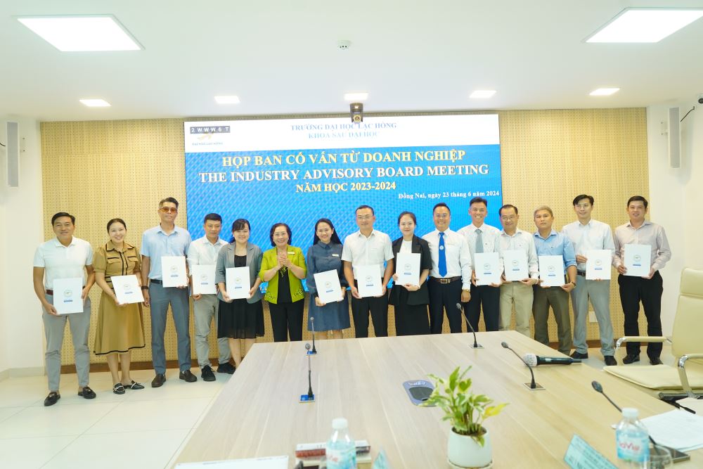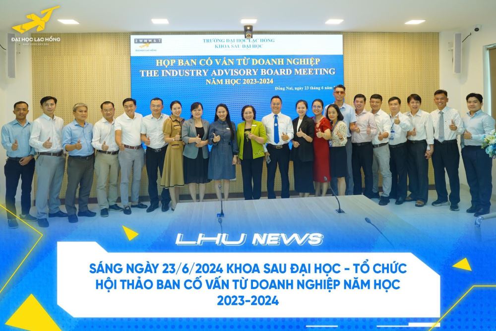 Vào sáng ngày 23/6/2024, tại phòng họp cơ sở 1, buổi họp Ban cố vấn từ doanh nghiệp đã diễn ra với sự tham dự của Ban giám hiệu, Tập thể khoa Sau Đại học, Trung tâm Tuyển sinh và Quan hệ công chúng Trường Đại học Lạc Hồng và nhiều đại diện từ các doanh nghiệp có quy mô lâu đời trên địa bàn tỉnh và các khu vực lân cận.