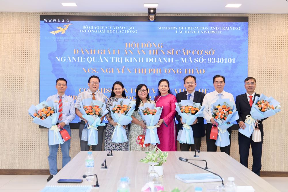 Tham gia hội đồng đánh giá lần này là các chuyên gia hàng đầu trong lĩnh vực Quản trị Kinh doanh, bao gồm: PGS.TS. Nguyễn Thanh Lâm - Phó Hiệu trưởng Trường Đại học Lạc Hồng, PGS.TS. Nguyễn Quyết Thắng - Trường Đại học Công nghệ TP. Hồ Chí Minh, TS. Lữ Phi Nga - Trưởng Khoa Sau đại học Trường Đại học Lạc Hồng, TS. Nguyễn Văn Đạt - Trường Đại học Ngân hàng TP. Hồ Chí Minh, TS. Nguyễn Thị Bạch Tuyết - Trường Đại học Lạc Hồng, TS. Lê Ngô Ngọc Thu - Trường Đại học Công nghệ TP. Hồ Chí Minh và TS. Nguyễn Thành Long - Trường Đại học Công nghiệp TP. Hồ Chí Minh. Với sự dày dặn về kinh nghiệm và uy tín trong nghiên cứu, các thành viên trong hội đồng đã đưa ra những đánh giá công tâm, khách quan, đồng thời đóng góp nhiều ý kiến quý báu giúp nghiên cứu sinh Nguyễn Thị Phương Thảo hoàn thiện thêm luận án của mình.