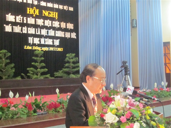 Thực hiện chương trình công tác năm 2013, Bộ Giáo dục & Đào tạo phối hợp với Công đoàn GDVN đã tổ chức các Hội nghị Tổng kết 5 năm cuộc vận động “Mỗi Thầy, Cô giáo là một tấm gương đạo đức, tự học và sáng tạo”; Tổng kết hoạt động công đoàn năm học 2012 -2013, triển khai nhiệm vụ năm học 2013-2014 và sơ kết 3 năm phong trào thi đua “ Giỏi việc trường, đảm việc nhà” giai đoạn 2010 -2012 trong thời gian từ ngày 19/7 đến 21/7/2013 tại Hội trường Tỉnh ủy, Thành phố Đà Lạt, tỉnh Lâm Đồng.