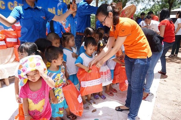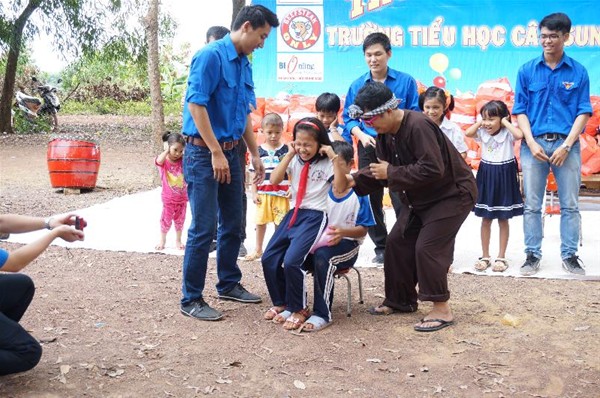 Chương trình cũng đã dành tặng 100 phần quà (trị giá 150 ngàn/phần) bao gồm tập vở, bánh kẹo, mì gói, sữa,…cho tất cả các em học sinh từ cấp mầm non đến các khối lớp 1,2,3,4,5 của Trường Tiểu học Cây Sung. Những phần quà tuy không có giá trị lớn về mặt vật chất song nó lại có ý nghĩa rất lớn đối với các em học sinh nơi đây.
