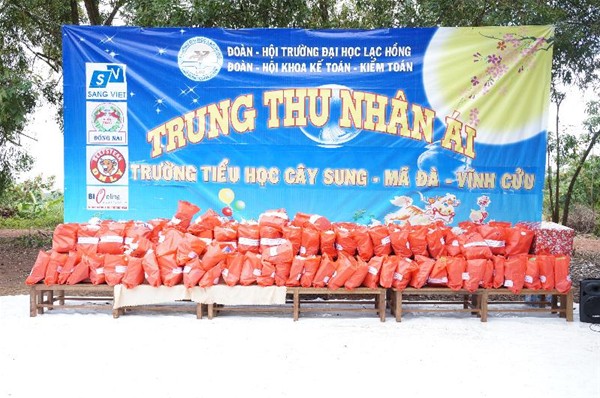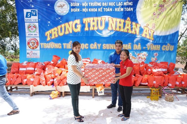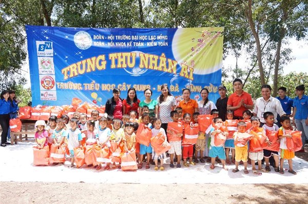 Với tâm nguyện mang đến thật nhiều niềm vui, những phần quà ý nghĩa cũng như nguồn động viên, khích lệ cuộc sống; đồng thời đem đến cho các trẻ em có hoàn cảnh khó khăn một mùa trung ấm áp nghĩa tình…Ngày 19/9/2013 Công đoàn cơ sở Đại học Lạc Hồng phối hợp cùng Đoàn-Hội sinh viên Khoa Kế toán – Kiểm toán đã mang đến một ngày “Trung thu nhân ái” cho các trẻ em nghèo ở Trường Tiểu học Cây Sung, xã Mã Đà, huyện Vĩnh Cửu, tỉnh Đồng Nai.