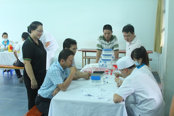Từ đầu tháng 05/2014, sau khi gửi phiếu kham thảo và giới thiệu các hạng mục đăng ký khám chữa bệnh đến từng CB, GV, NV. Ngày 30/05 đồng loạt CB, GV, NV đã được các y tá, bác sĩ của Bệnh viện Quốc tế Đồng Nai đến trường để tiến hành lấy mẫu máu và nước tiểu về bệnh viện làm xét nghiệm. Tiếp theo, BCH Công đoàn tổ chức xe đưa đón từng nhóm CB, GV, NV lên trụ sở chính của Bệnh viện Quốc tế Đồng Nai để được khám tổng quát từ ngày 03/06 đến ngày 07/06/2014. BCH Công đoàn đã chia nhỏ số lượng người khám, 50 người/buổi/ngày để công tác khám và tư vấn được đầy đủ và chu đáo hơn.