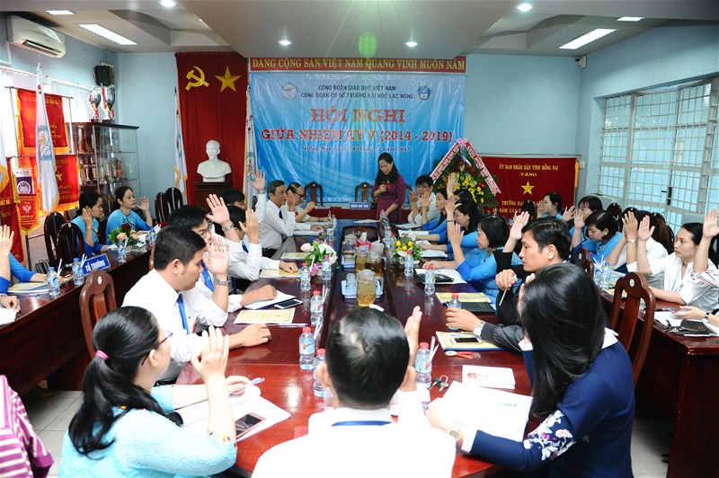 Sáng ngày 28/12/2017, Hội nghị Đại biểu Công đoàn Đại học Lạc Hồng giữa nhiệm kỳ V (2014 – 2019) đã diễn ra thành công tốt đẹp với sự tham dự và chúc mừng của Đảng ủy và Ban Giám hiệu nhà trường cùng 30 Đại biểu là thành viên Ban chấp hành, Ủy ban Kiểm tra và Tổ trưởng Công đoàn nhiệm kỳ (2014 – 2019) đại diện cho 467 Công đoàn viên trường Đại học Lạc Hồng. Thay mặt Đoàn chủ tịch, Thầy Diệp Cẩm Thu báo cáo Sơ kết những hoạt động Công đoàn đã đạt được trong nửa nhiệm kỳ đầu (2014 - 2017) và phương hướng hoạt động Công đoàn nửa nhiệm kỳ sau (2017- 2019).