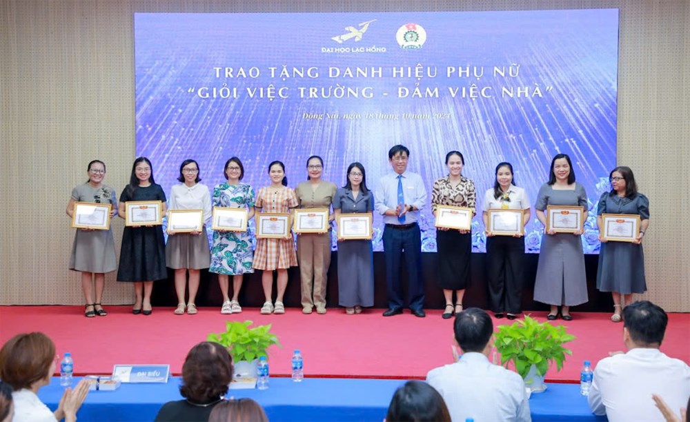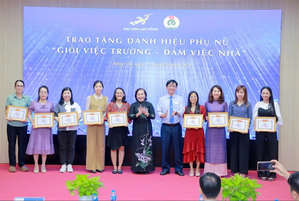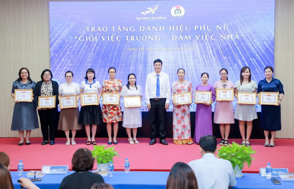 Nhân dịp này, Công đoàn Trường Đại học Lạc Hồng đã khen thưởng 37 Nữ CB – NGNLĐ với danh hiệu “Giỏi việc trường – Đảm việc nhà” đây là những điển hình Phụ nữ tích cực học tập, lao động sáng tạo và xây dựng gia đình hạnh phúc.