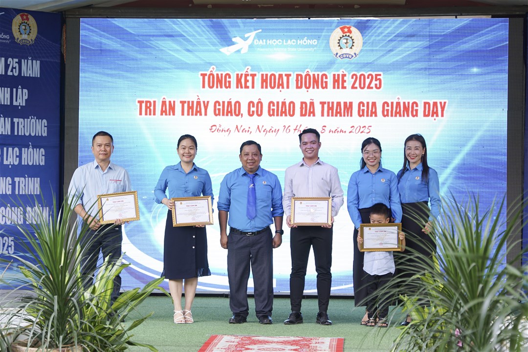 Sáng ngày 16/8/2025, tại Hội quán Trấn Biên, Công đoàn Cơ sở Trường Đại học Lạc Hồng đã tổ chức chương trình Tuyên dương con Nhà giáo, Người lao động (NGNLĐ) đạt thành tích “Học giỏi – Sống tốt” năm học 2024 – 2025 và Tổng kết hoạt động hè năm 2025.