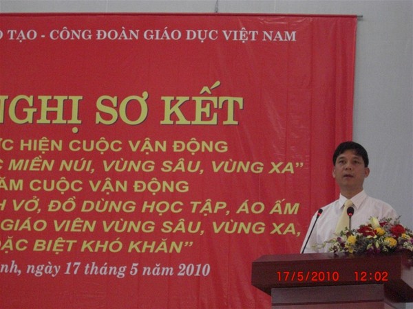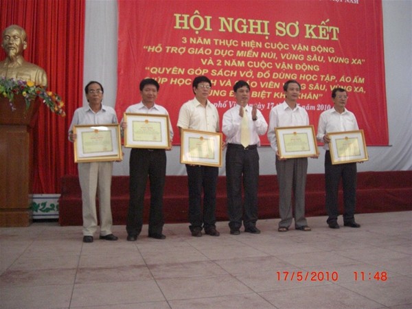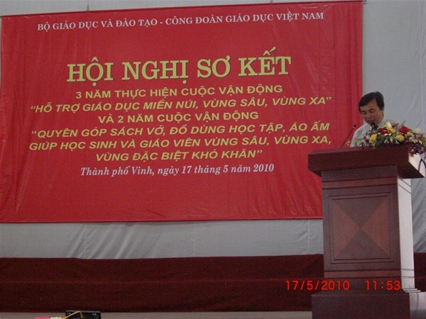 Trong Hội nghị Sơ kết 3 năm cuộc Vận động “ Hỗ trợ giáo dục miền núi , vùng sâu, vùng xa “ và 2 năm cuộc vận động “ Quyên góp sách vỡ, đồ dùng học tập , áo ấm giúp học sinh và giáo viên vùng sâu, vùng xa , vùng đặc biệt khó khăn “, đại diện Công đoàn nhà trường , Thầy Diệp Cẩm Thu đã báo cáo tham luận tại Hội nghị về kết quả nhà trường đã đạt được trong thời gian qua . Thành tích cụ thể của nhà trường đã được Bộ Giáo dục và Công đoàn Giáo dục Việt Nam đánh giá cao và khen thưởng Bằng khen của Bộ Trưởng Bộ Giáo dục và Đào tạo cho Tập thể Công đoàn Lạc Hồng và Cá nhân Thầy Hiệu trưởng Trần Hành .