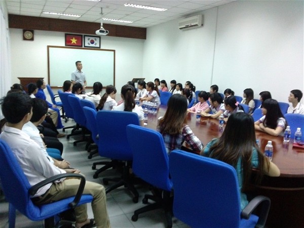 Trong buổi tham quan và nói chuyện với sinh viên ngành Hàn Quốc học, ngoài việc giới thiệu về Công ty, giải đáp thắc mắc cho sinh viên về các chế độ mà Công ty sẽ dành cho sinh viên thực tập và người lao động trong tương lai, ông Kha còn chia sẻ một số kinh nghiệm với sinh viên về các kỹ năng cần thiết  nên trang bị trước khi đi phỏng vấn việc làm, cách đàm phán mức lương với nhà tuyển dụng… Đây thực sự là cuộc tọa đàm hữu ích cho sinh viên, đặc biệt là với các em sinh viên năm cuối chuẩn bị đi thực tập tại các công ty.