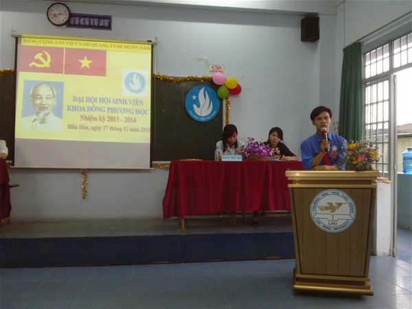 Vào lúc 14 giờ 00, ngày 17/12/2013, tại phòng E105, cơ sở 3, Trường Đại học Lạc Hồng Liên chi hội sinh viên khoa Đông Phương học tổ chức Đại hội Đại biểu Liên Chi Hội sinh viên khoa nhiệm kỳ 2013 - 2014.