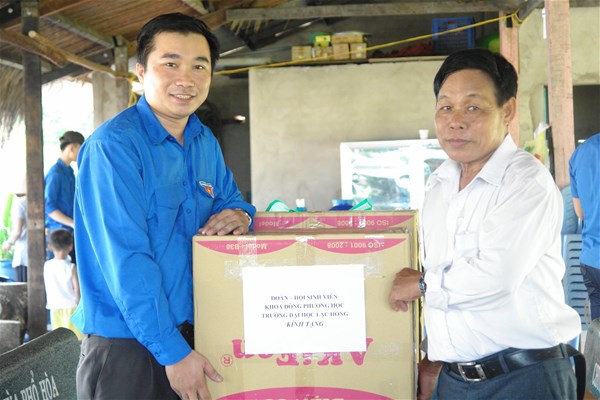 Thầy Phan Thế Anh - Bí thư Đoàn khoa trao quà cho trung tâm
