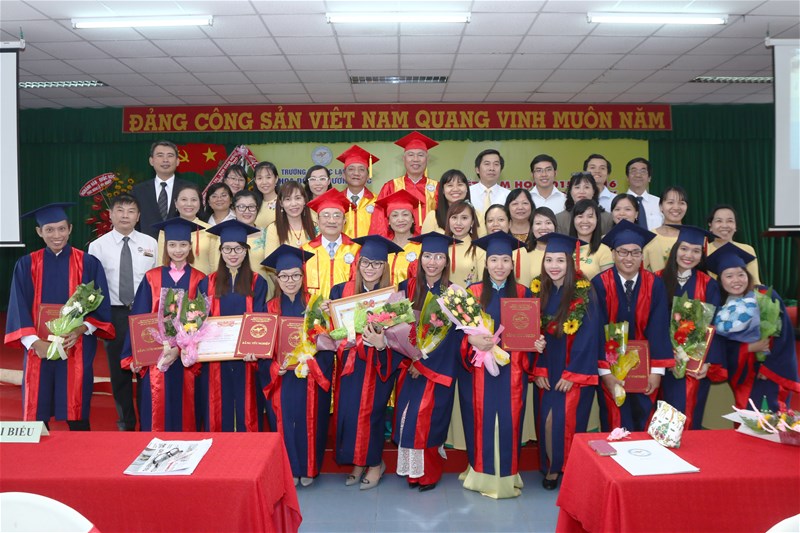 Tân cử nhân trườngcủa khoa Đông Phương học chụp hình lưu niệm với Ban Giám hiệu Nhà trường