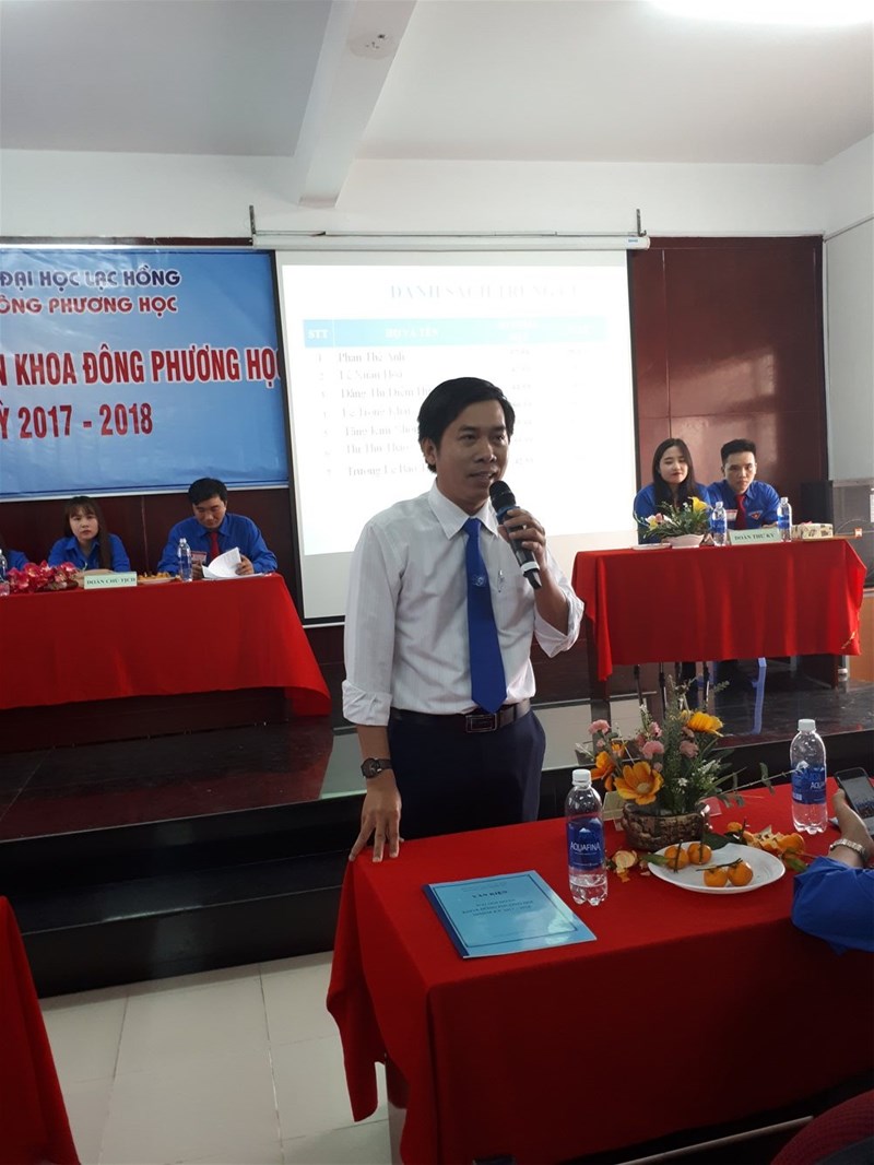 Vào lúc 14h00 ngày 17 tháng 11 năm 2017, Đoàn Khoa Đông Phương học đã long trọng tổ chức Đại hội Đại biểu Đoàn Thanh niên CS Hồ Chí Minh nhiệm kỳ 2017-2018 tại phòng I209, cơ sở 6, trường Đại học Lạc Hồng.