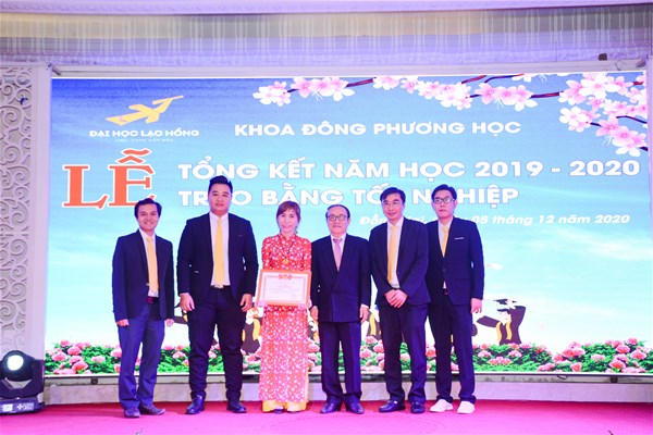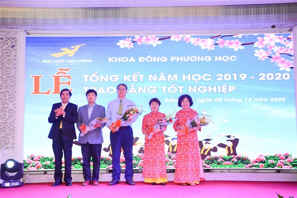 Năm học 2019 – 2020 tình hình dịch bệnh diễn biến phức tạp nhưng tập thể Khoa Đông phương học đã từng bước vượt qua, thực hiện thắng lợi nhiệm vụ năm học và thực hiện đúng theo tinh thần chỉ đạo của nhà trường về chiến lược phát triển giáo dục. Điều này được thể hiện rõ thông qua báo cáo tổng kết năm học 2019 – 2020 của Khoa. Tham dự buổi Lễ, NGƯT. TS. Nguyễn Thị Thu Lan – Phó Hiệu trưởng nhà trường đã có bài phát biểu ghi nhận kết quả và những thành tích mà Khoa đã đạt được trong năm học 2019 – 2020. Bên cạnh đó, NGƯT. TS. Nguyễn Thị Thu Lan cũng động viên, khuyến khích và có những ý kiến chỉ đạo đối với tập thể sư phạm khoa Đông phương học, giúp Khoa có hướng đi đúng đắn để ngày càng phát triển hơn trong giai đoạn sắp tới.