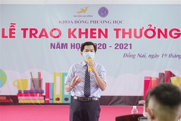 Phát biểu tại buổi lễ, TS.Nguyễn Hữu Nghị - Trưởng Khoa Đông phương học đã tuyên dương các bạn sinh viên đã có thành tích học tập tốt trong năm học vừa qua và động viên tinh thần các bạn hướng đến những thành công mới trong năm học 2021 - 2022.
