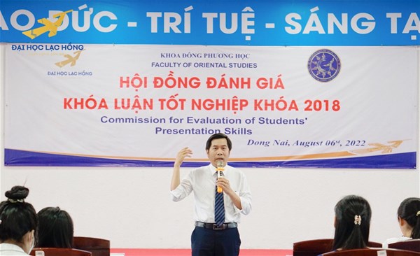 Nhằm đánh giá quá trình học tập, trau dồi kiến thức và nghiên cứu của các bạn sinh viên khóa 2018 và sinh viên thực tập lại, ngày 06 tháng 8 năm 2022, Khoa Đông phương học tổ chức Hội đồng đánh giá khoá luận tốt nghiệp. Thành phần Hội đồng đánh giá bao gồm TS. Nguyễn Hữu Nghị (Trưởng Khoa) – Chủ tịch Hội đồng, ThS. Nguyễn Thị Hoàng Oanh (Phó Khoa) – Phó chủ tịch hội đồng và các thành viên gồm Trưởng ngành, Tổ trưởng bộ môn và giảng viên các chuyên ngành. Năm nay, Hội đồng báo cáo được chia thành 5 Tiểu ban. Ngay sau phiên khai mạc, sinh viên lần lượt thực hiện báo cáo theo từng Tiểu ban đã được phân chia từ trước.